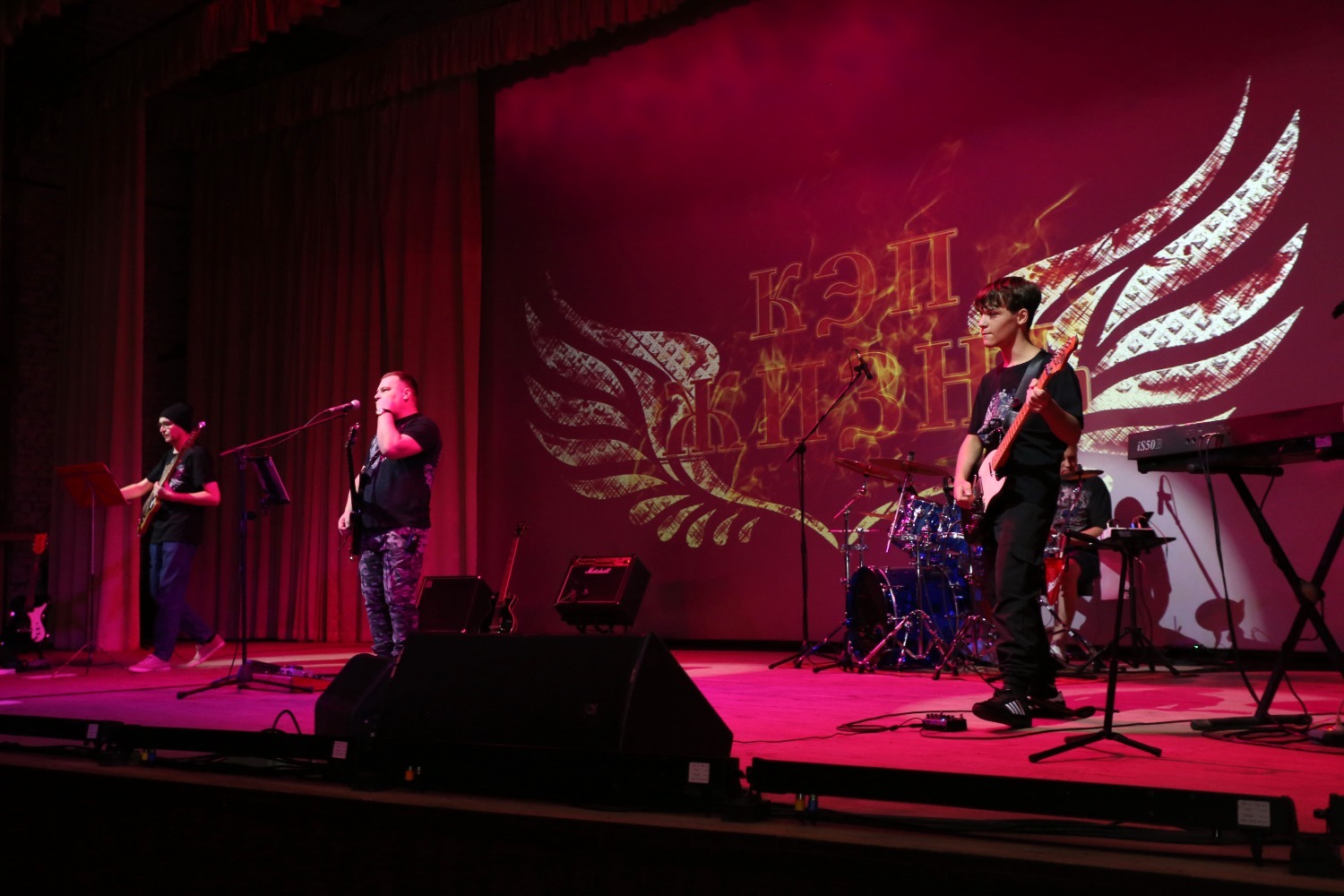 Участники коллектива «Жизнь» открыли концерт «Рок-патриот». А в продолжение программы на сцену вышел молодой коллектив «Каруна».