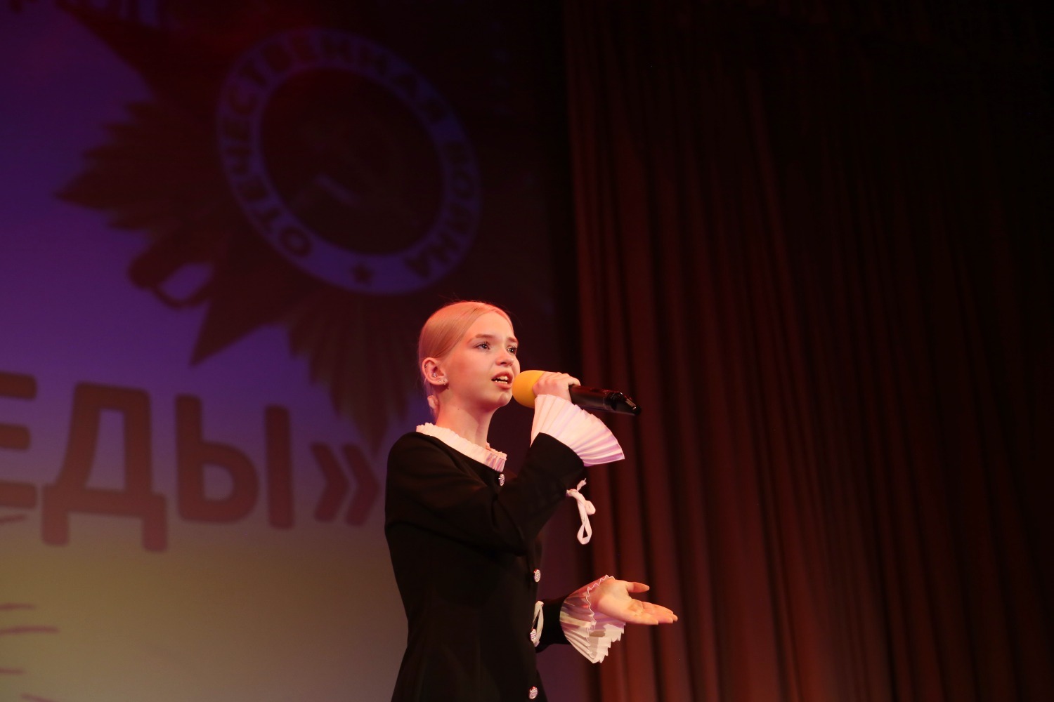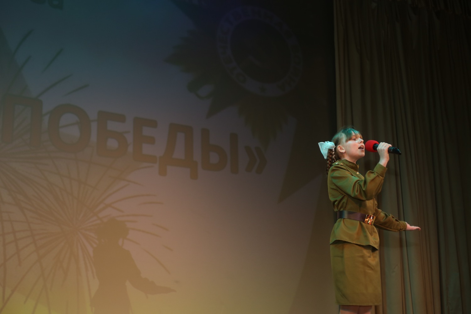 Открылся фестиваль песней «Нам нужна одна Победа». Её исполнила участница всероссийских конкурсов и фестивалей Анфиса Соболева. Песня задала тон всему патриотическому мероприятию.