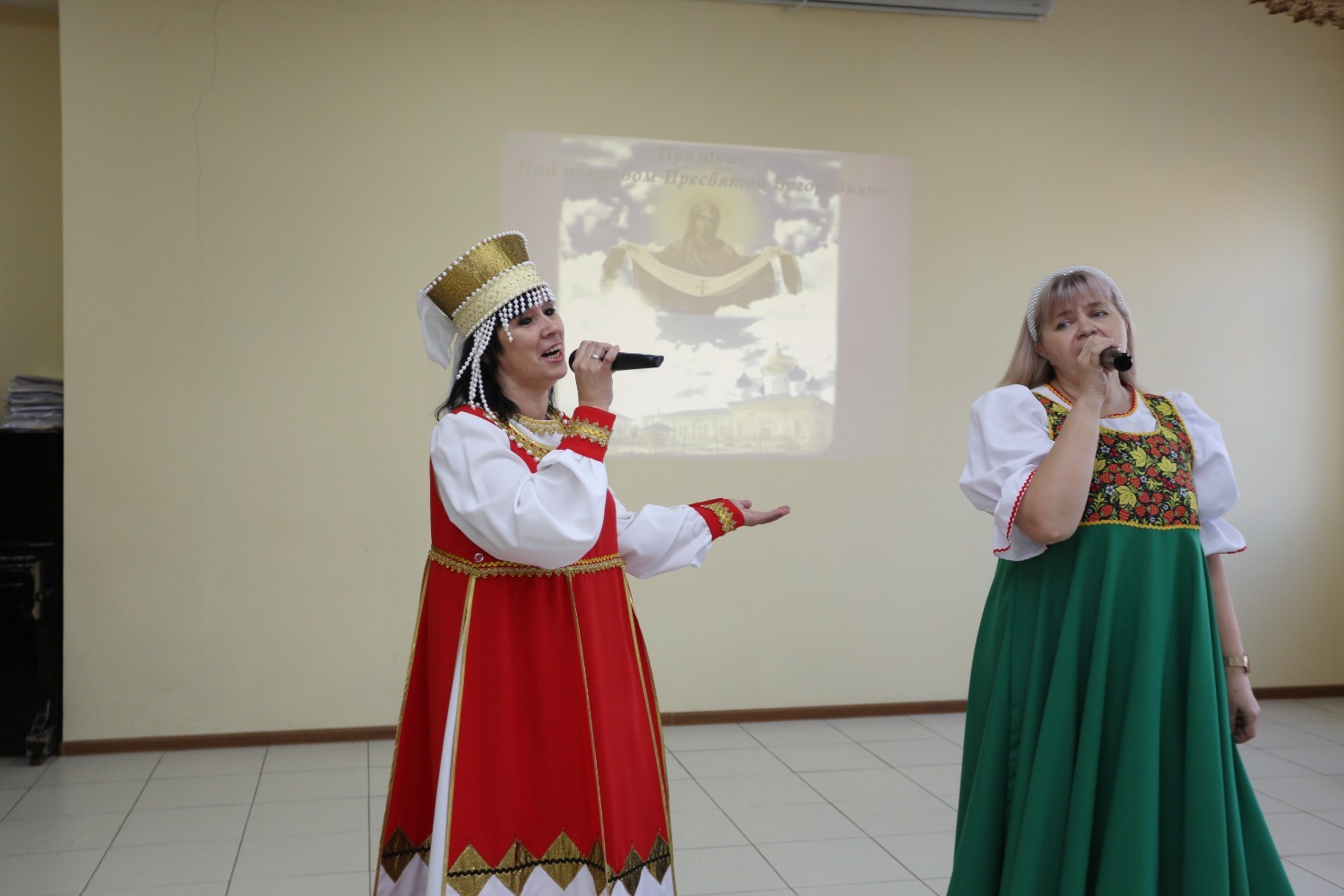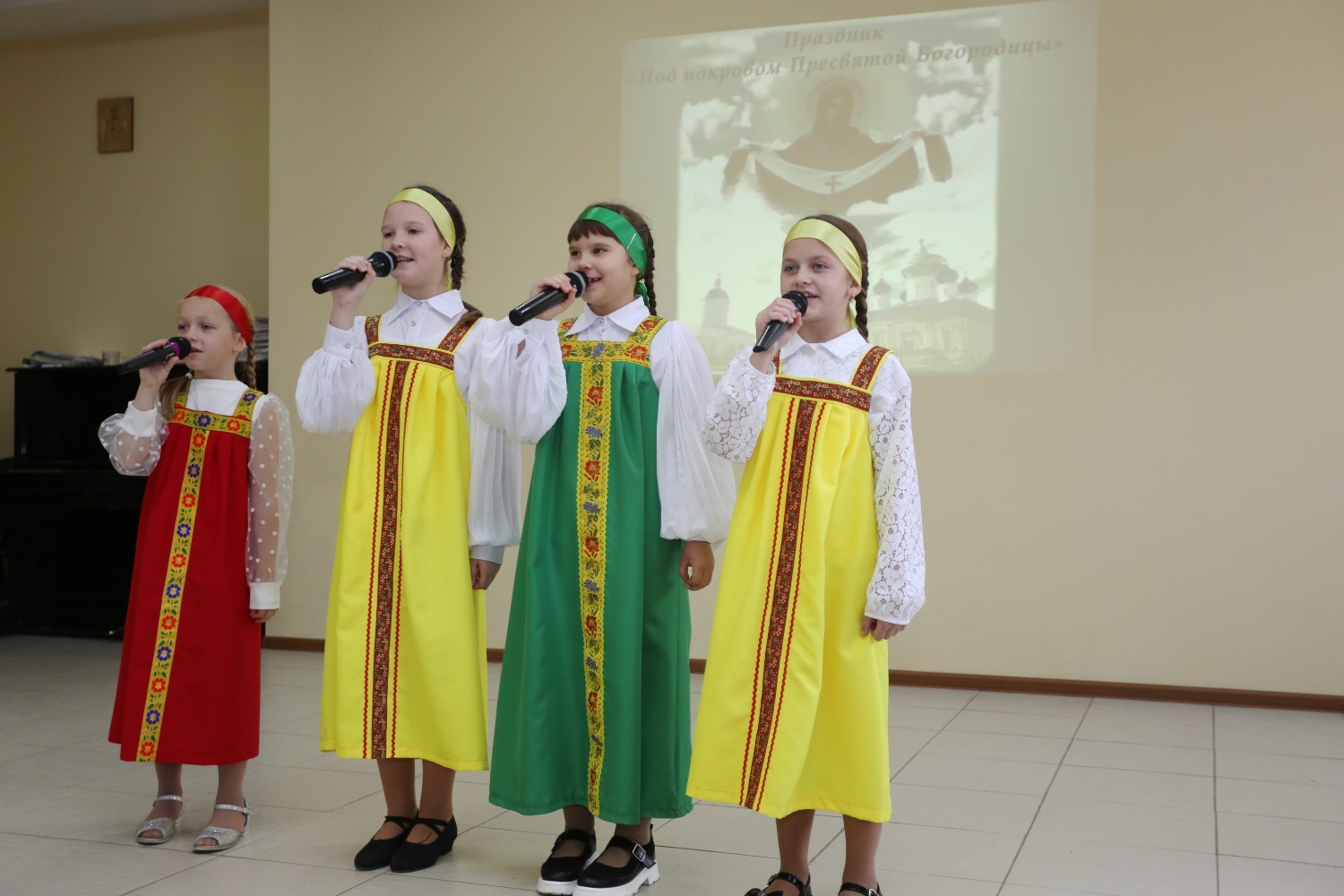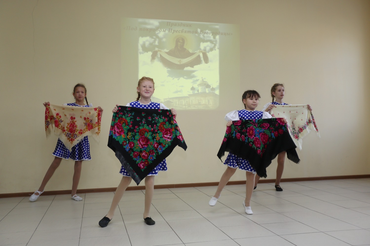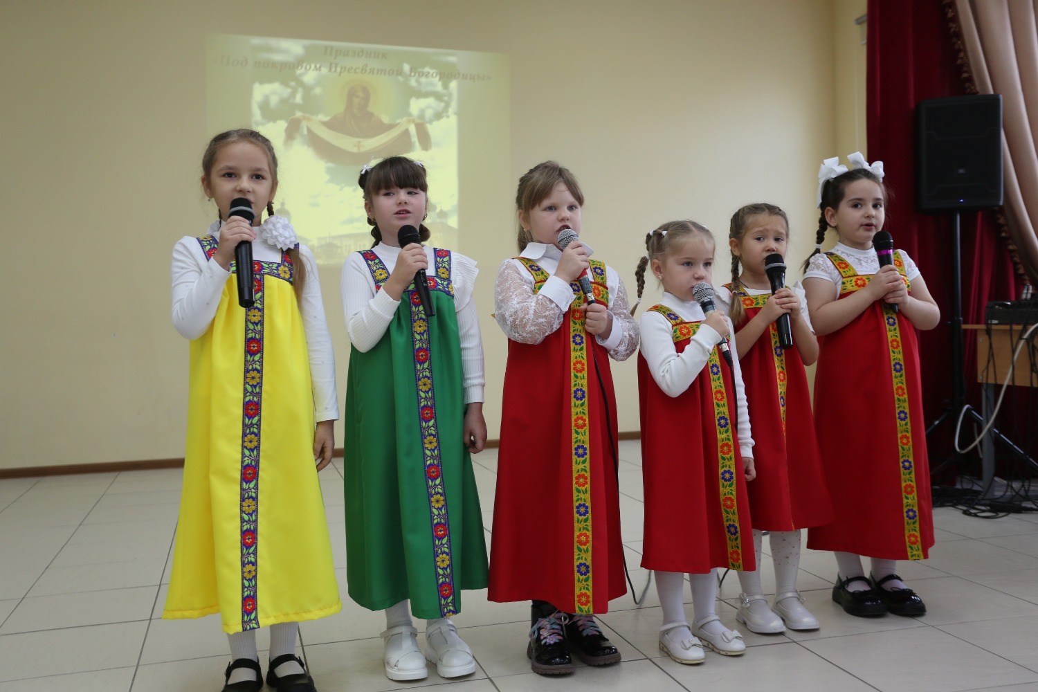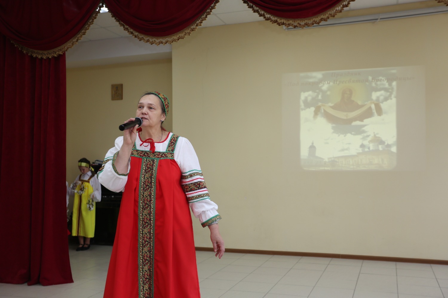 Ведущие — иеромонах Тихон (Зубакин) и Лариса Пакина, рассказали о традициях проведения Покровских ярмарок. Яркие номера художественной самодеятельности продолжили празднование.