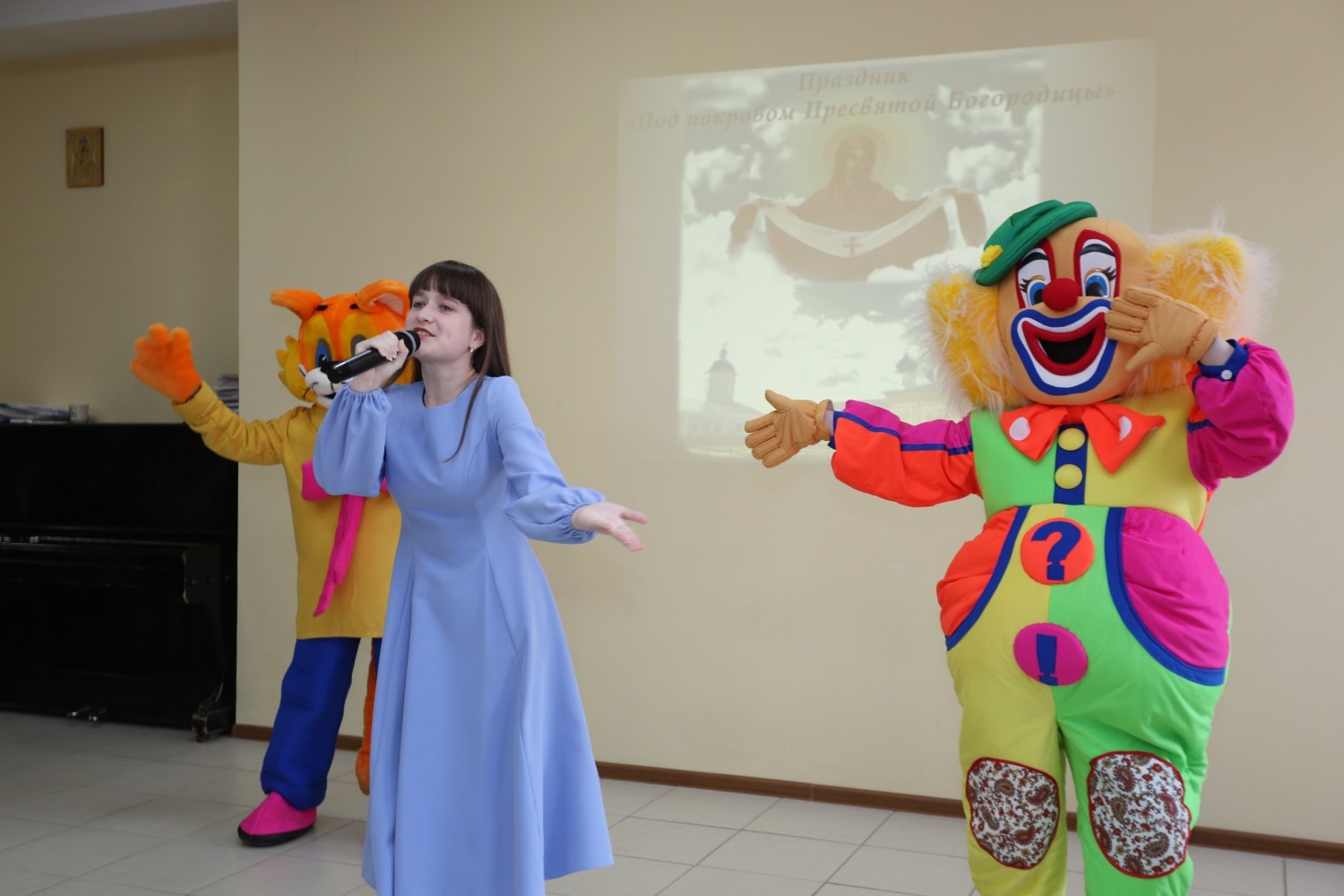 На память об участии в празднике, гости духовно-просветительского центра делали снимки. Для этого организаторы подготовили яркую осеннюю фотозону. Ростовые куклы — Клоун и Кот Леопольд, добавили праздничного настроения всем присутствующим.