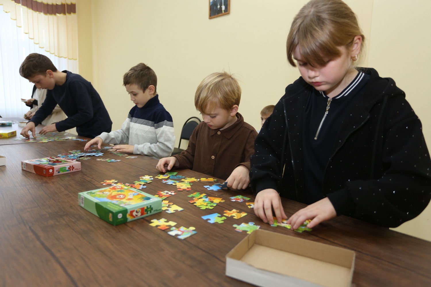 Вкусная выпечка и ароматный чай стали неотъемлемой частью благотворительной ярмарки. Пирожки и сладости гости праздника покупали за считанные минуты. И, подкрепившись, спешили в игротеку. Здесь ребята участвовали в скоростном турнире по сборке пазлов, играли в настольные игры. А самый ловкий получал сладкий приз.