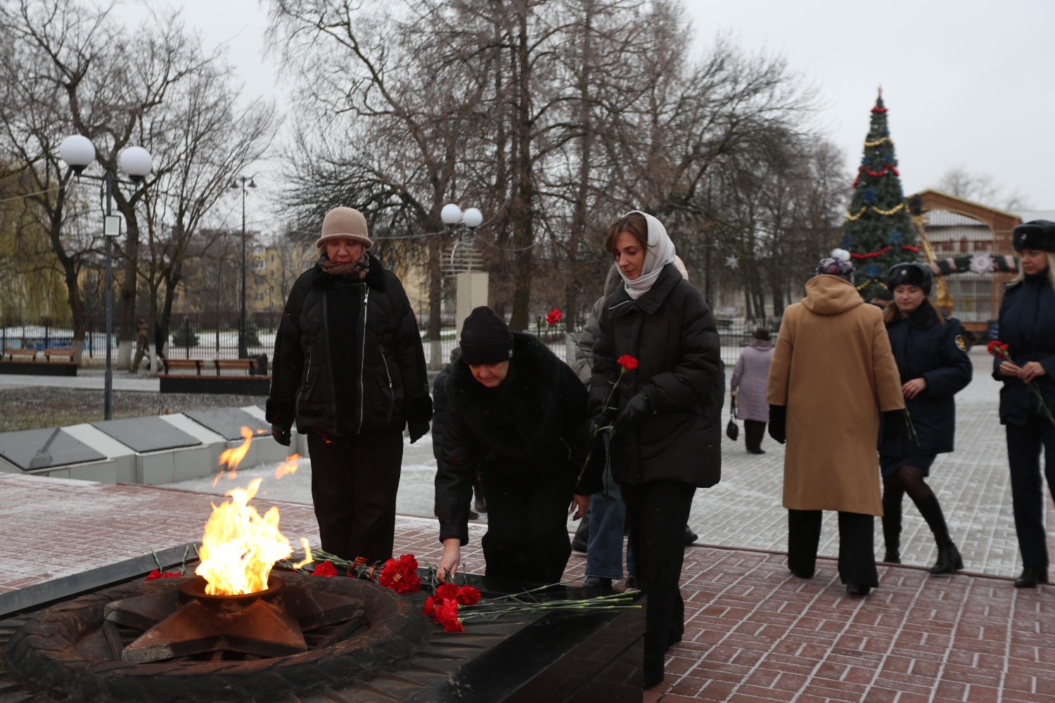 После минуты молчания, все присутствующие возложили цветы к мемориалу «Вечный огонь».