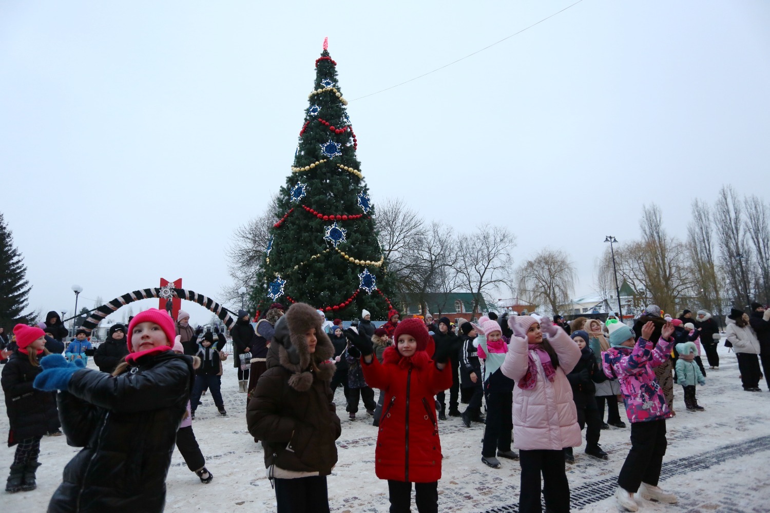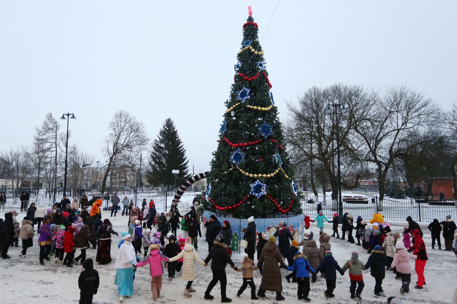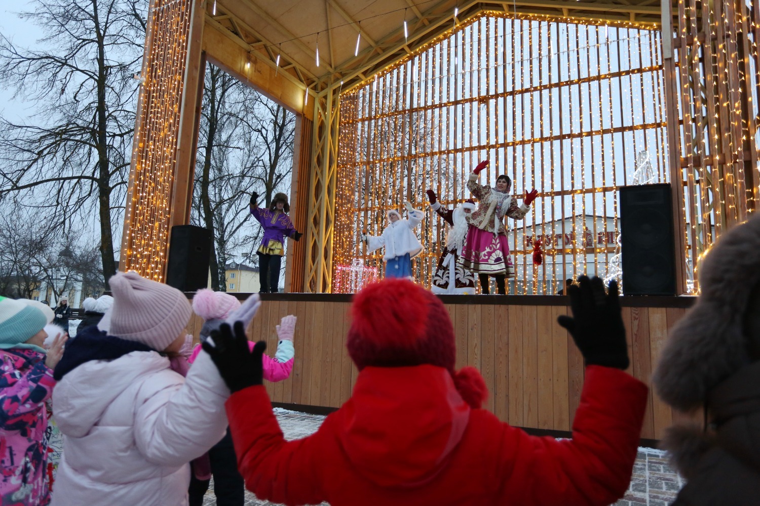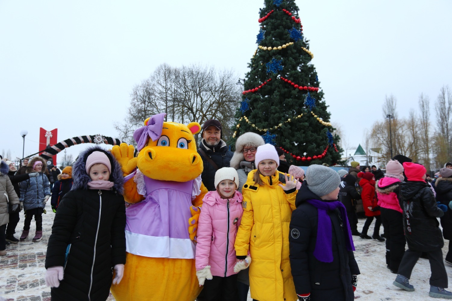 С нетерпением дети ждали появления Деда Мороза и Снегурочки, которые дали долгожданную команду: «Раз, два, три! Ёлочка, гори!». Под дружные возгласы новогодняя красавица — двенадцатиметровая ель, засияла огнями.