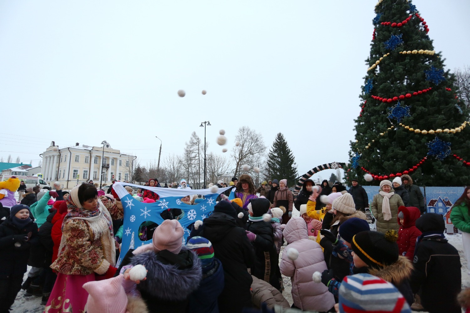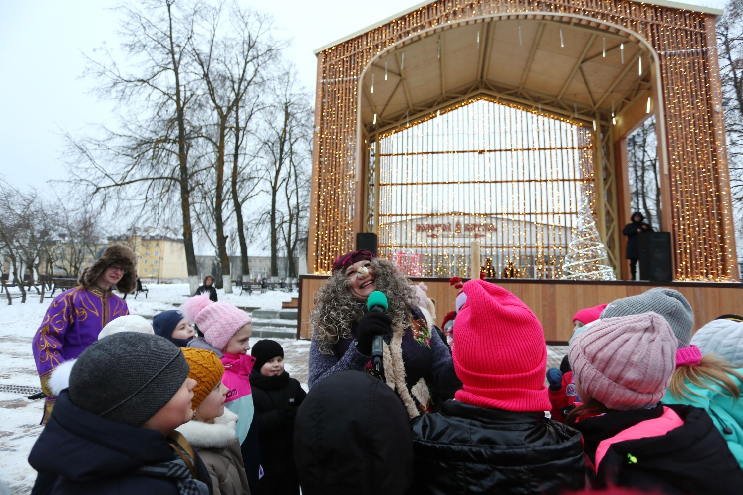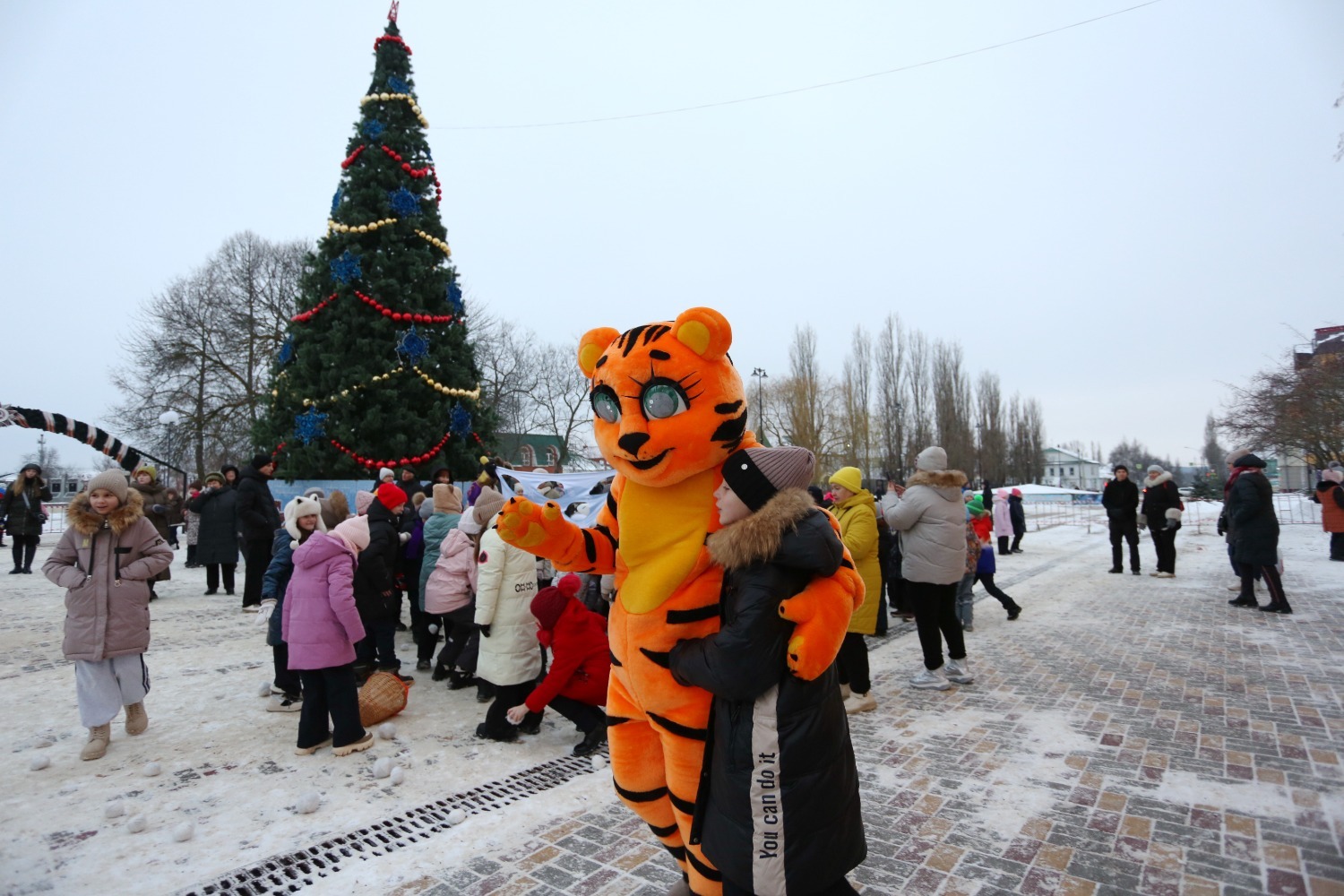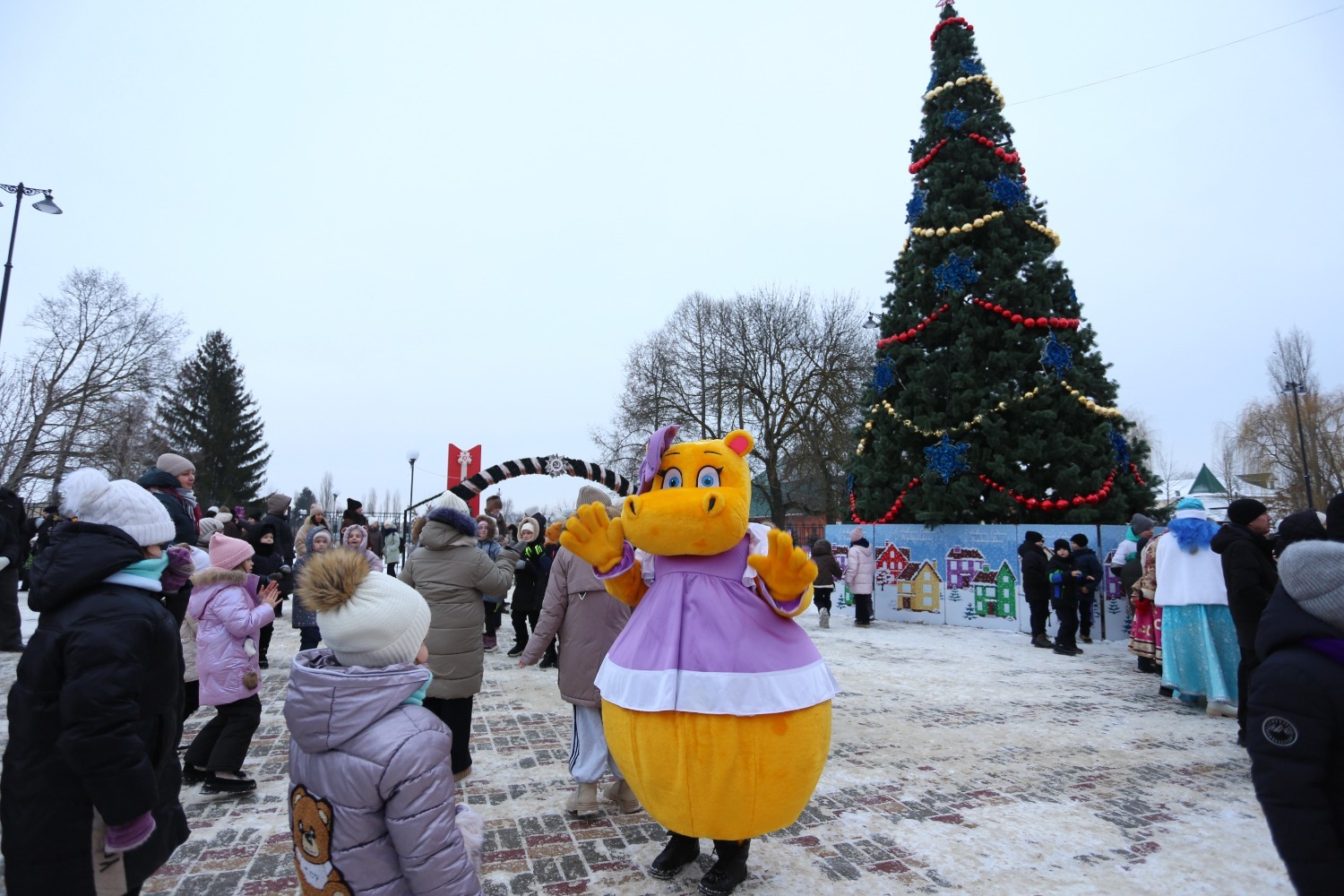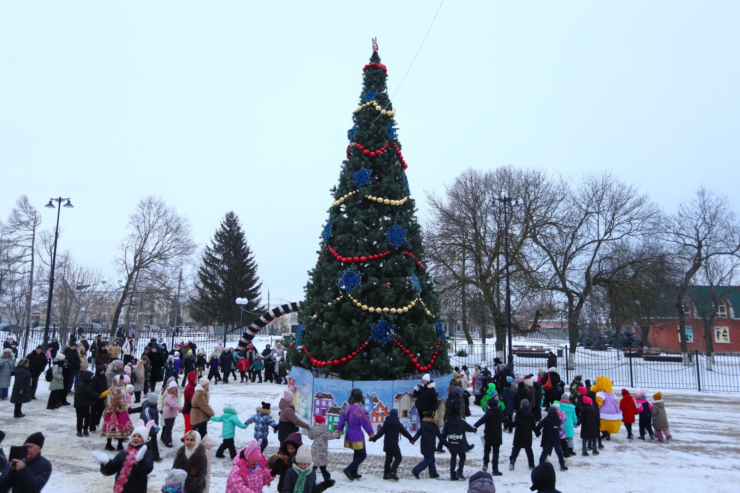 С нетерпением дети ждали появления Деда Мороза и Снегурочки, которые дали долгожданную команду: «Раз, два, три! Ёлочка, гори!». Под дружные возгласы новогодняя красавица — двенадцатиметровая ель, засияла огнями.