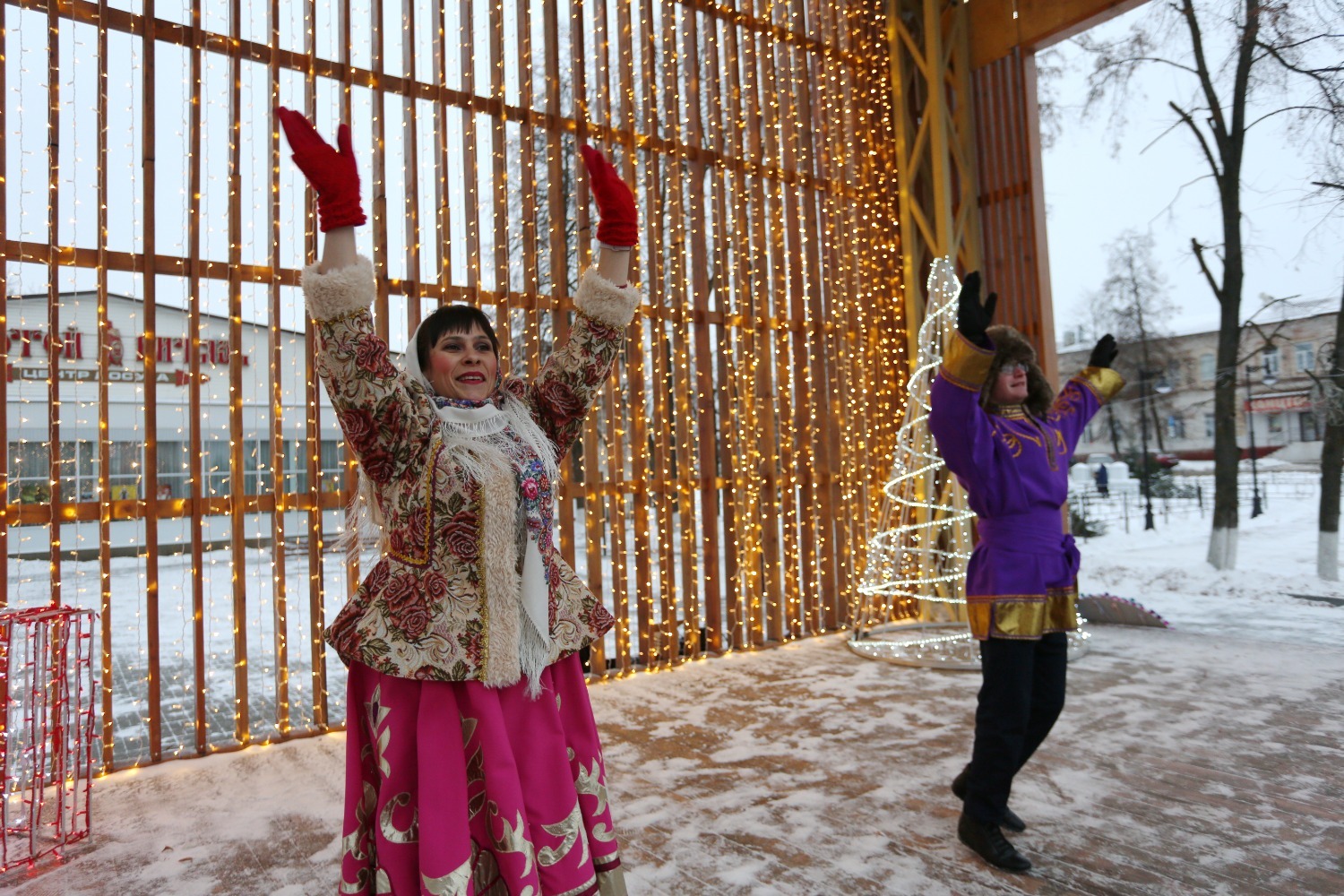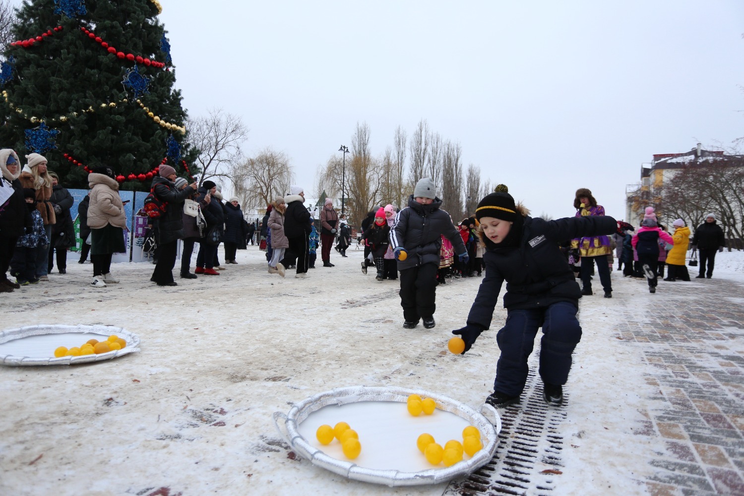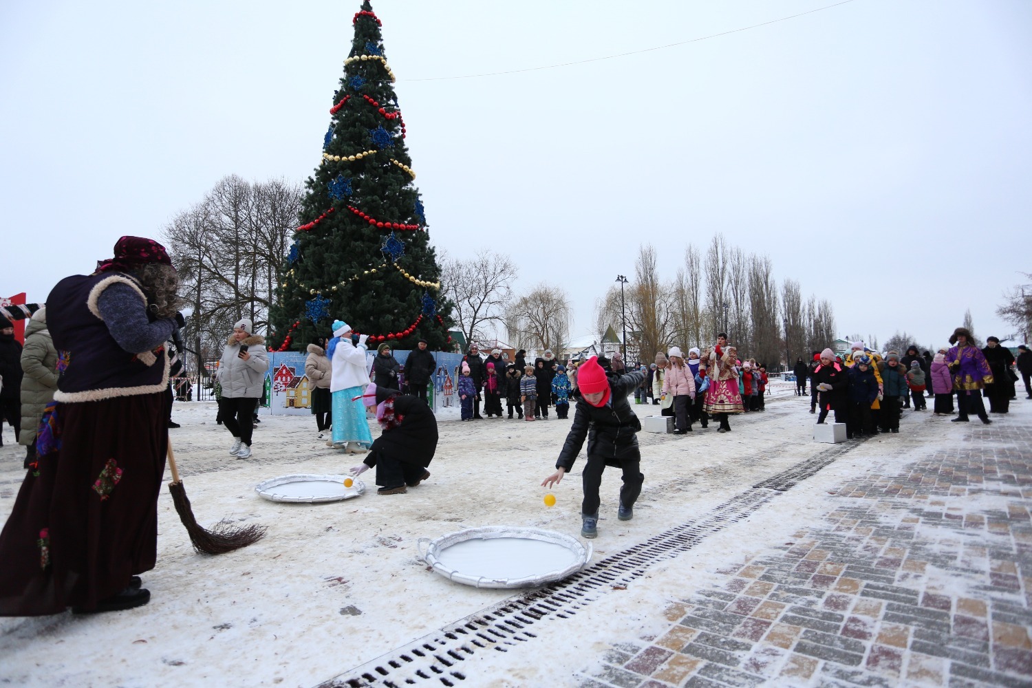 Гостей праздника встречали сказочные персонажи: Иван да Марья, Зима и Баба Яга. Вместе с детьми они провели весёлые конкурсы: нажарили картошки, устроили снежный бой и покатали на салазках снежки.