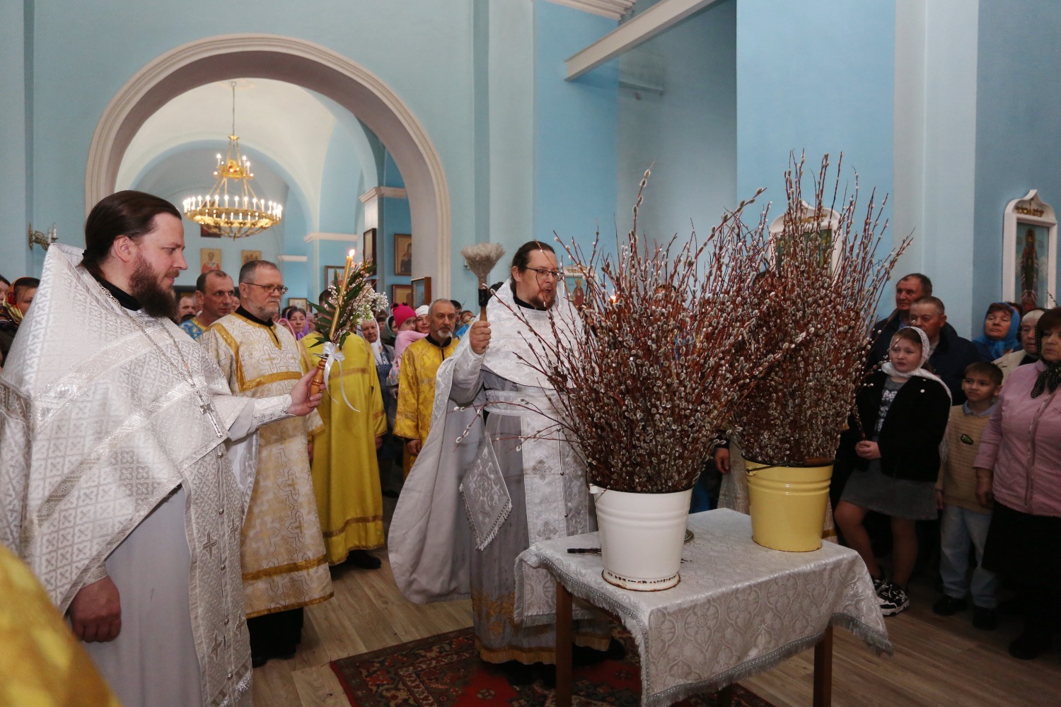 Богослужения Лазаревой субботы неразрывно связаны с Вербным воскресеньем. Накануне, в Лазареву субботу, в Тихвинском храме города Кирсанова на вечернем богослужении освятили распустившиеся веточки вербы. На утренней Божественной литургии Вербного воскресенья верующие тоже стоят с веточками вербы, которую потом принесут домой.
