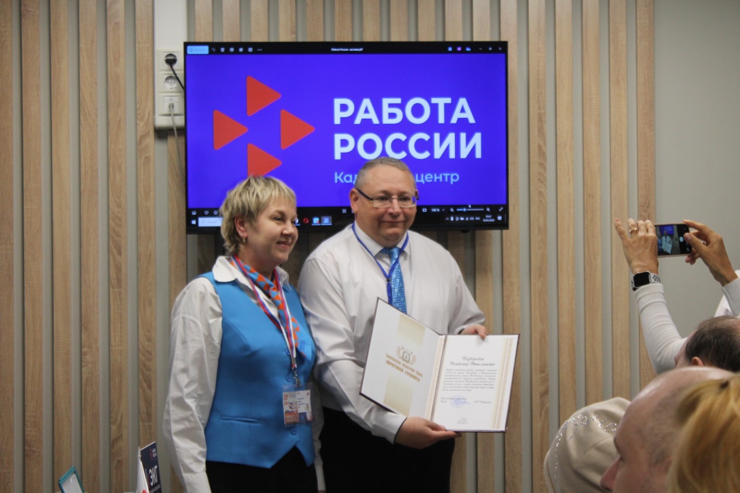 В рамках мероприятия Лариса Максимова вручила грамоты двум сотрудникам отдела кадрового центра города Кирсанова и Кирсановского муниципального округа Владимиру Безбородову и Ольге Сазоновой за преданность делу и высокие показатели в трудовой деятельности, перевыполнения плановых заданий.